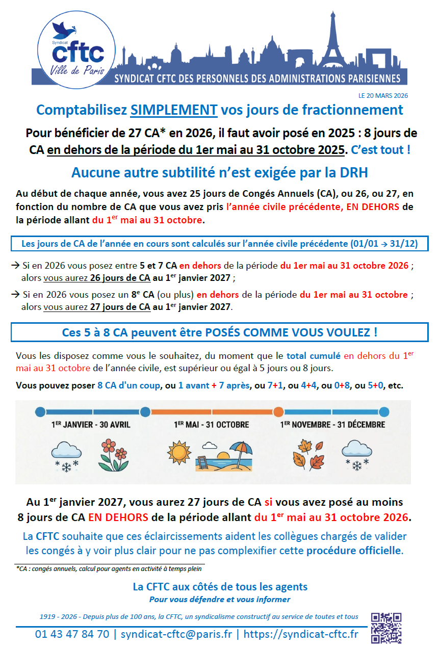 La CFTC souhaite que ces éclaircissements aident les collègues chargés de valider les congés à y voir plus clair pour ne pas complexifier cette procédure officielle.